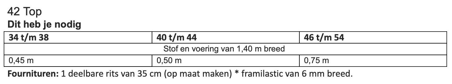 Dit patroon kun je maken in maat 34 t/m 54.