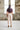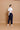 Basic broek die wat lager in de taille valt: de bovenrand is afgewerkt met een beleg. Een model met bandplooi, schuine steekzakken en achter een strookzak die sluit met knoopje en knoopsgat.
