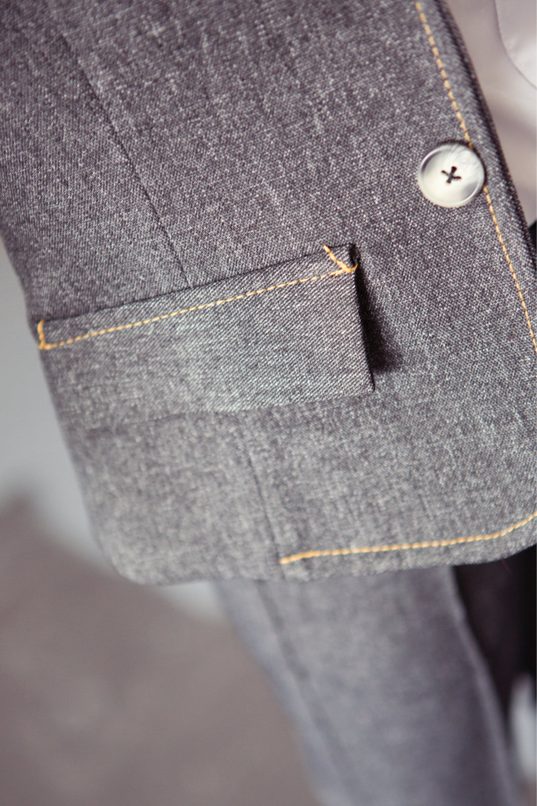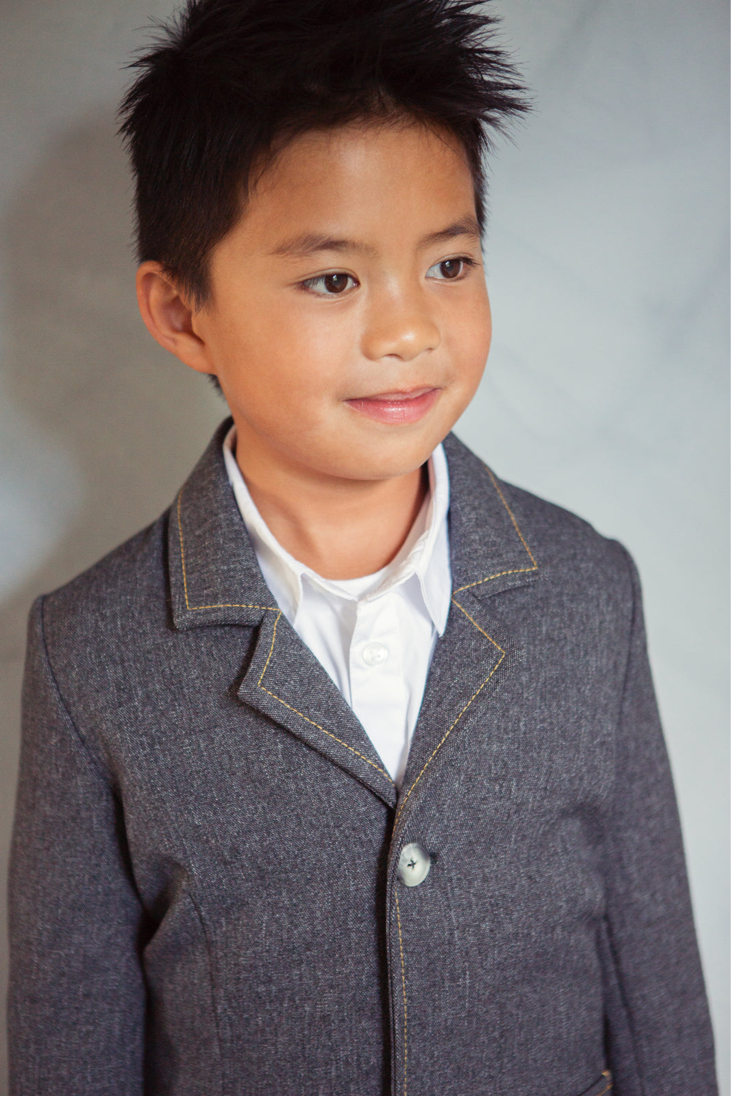 Maak je (klein)zoon blij met zo'n tof kostuum met slanke snit. Het colbertje, met alle klassieke details zoals de reverskraag en zakkleppen voor de sier. Maak het pak van denimlook stof (met wat stretch) voor een supercoole uitstraling.