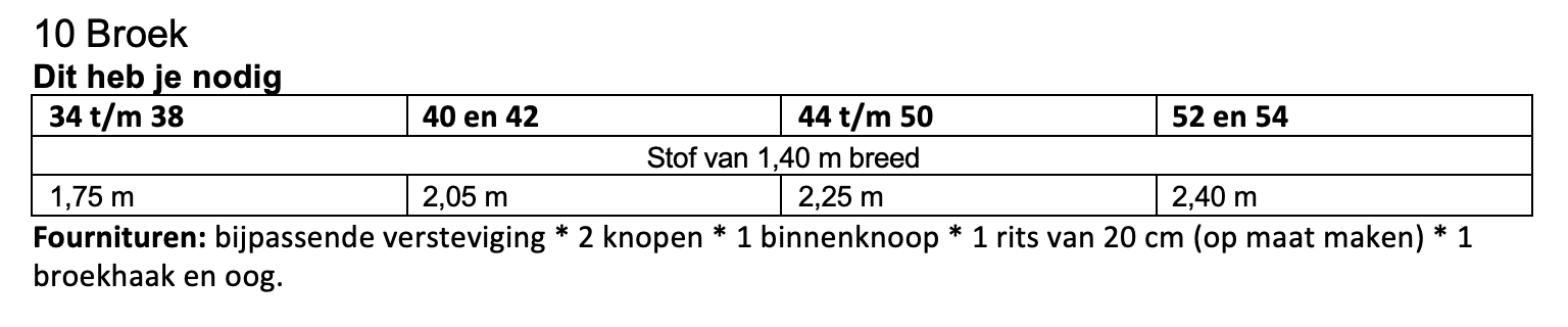 Dit patroon kun je maken in maat 34 t/m 54.