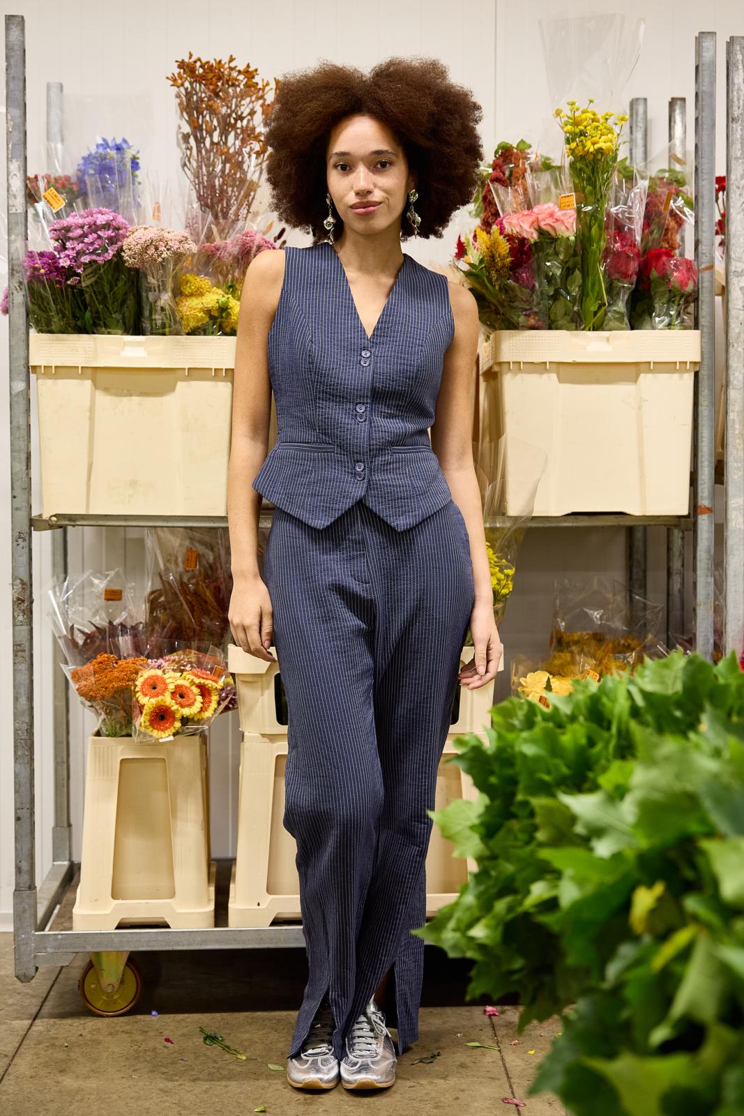 Stof: soepele denimlook stof, kostuumstof.