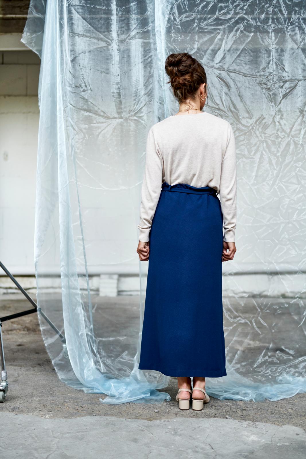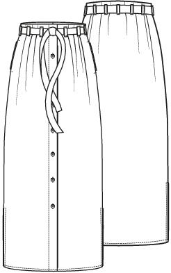 Rokken zijn hot deze winter, zoals dit makkelijk te maken doorknoopmodel met paperbag-effect: met de ceintuur snoer je de rechte bovenkant aan. Wil je hem zonder knoopjessluiting, maak dan rok 19.