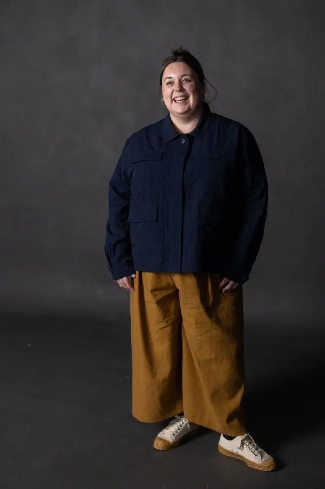 Een stijlvol paar culotte-broeken met een gulp, plooien aan de voorkant, praktische zijnaadzakken en een geëlasticeerde tailleband achter voor extra comfort. Het ontwerp combineert klassieke details met een moderne, losse pasvorm.
