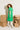 Het knalgroen maakt deze jurk een eyecatcher, maar ook in een basic kleur wordt hij bijzonder. Dat komt door het mooie volume aan de bovenkant; de aangeknipte pofmouwen en middenvoor het 'rimpelsplit'. Achter sluit de jurk met een split met lusje en knoopje.