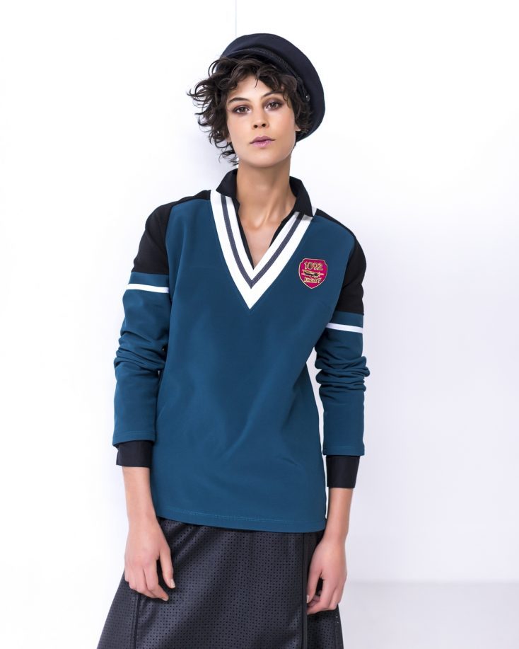 Deze sweater is afgeleid van de klassieke sporttrui.