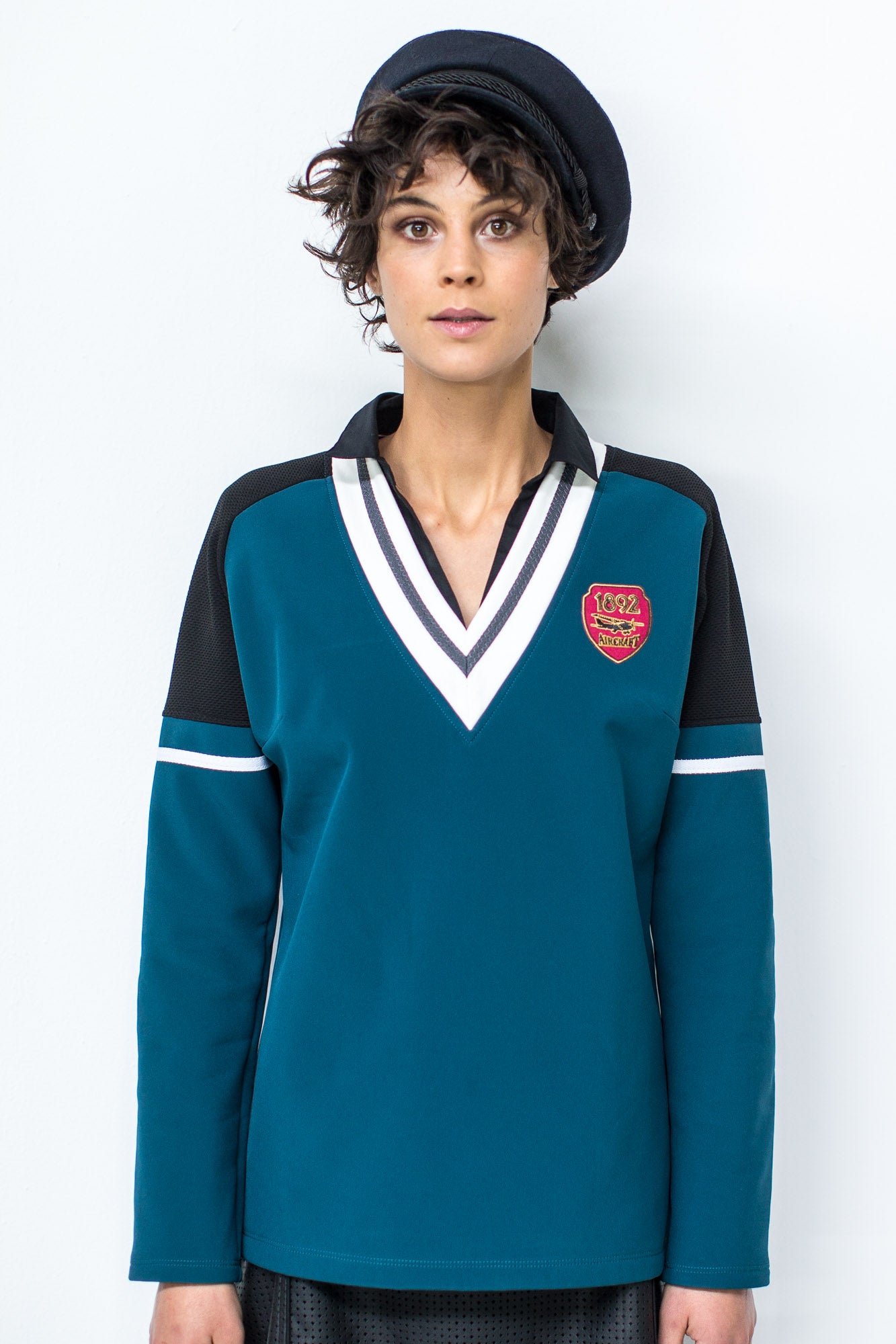 Deze sweater is afgeleid van de klassieke sporttrui.