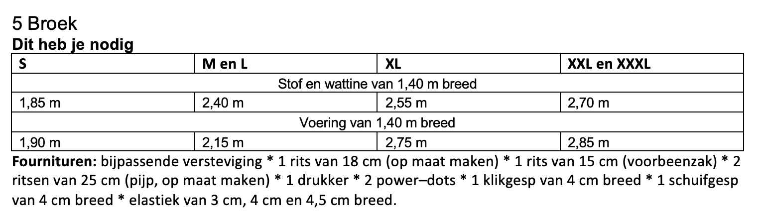 Dit patroon kun je maken in maat S t/m XXXL.