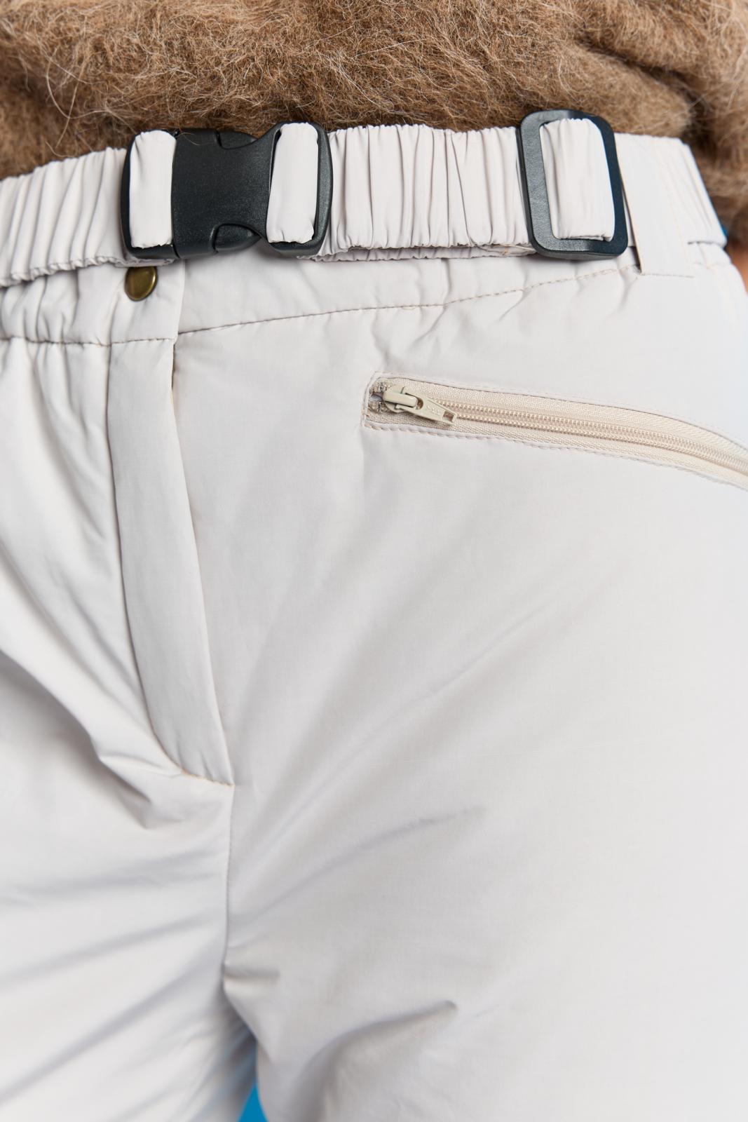 Deze skibroek heeft mooie details. Hij heeft een tailleband met elastiek voor veel comfort, en sluit met een gulp met bovenaan een drukkersluiting. De ritsen onder in de pijpen achter zijn praktisch voor over snowboots en het wisselen van schoenen.