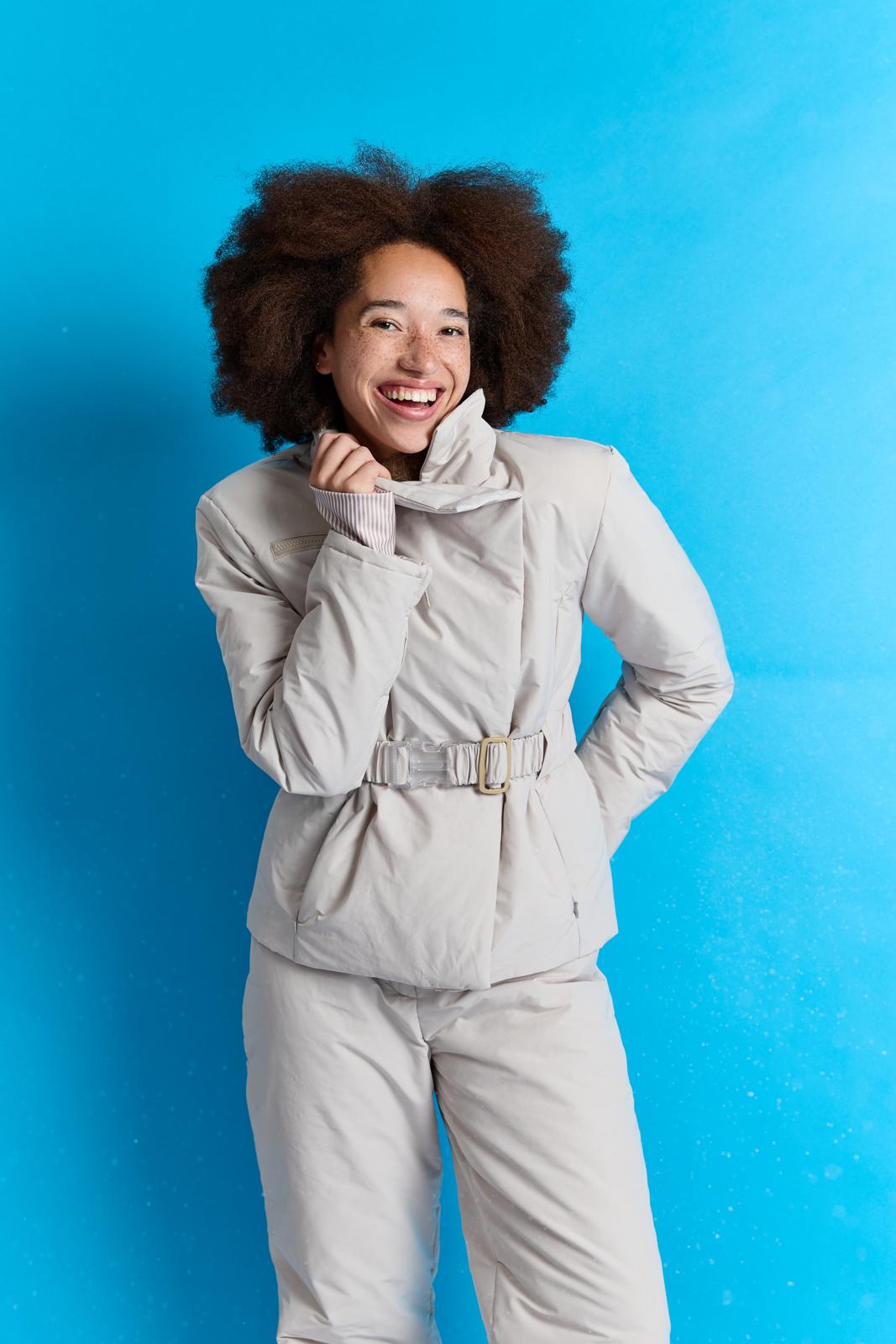 Een heerlijk warme winterjas met een opstaande boord en asymmetrische ritsluiting. In de deelnaden zijn zakken verwerkt met blinde ritsen. De manchetten zijn van gestreepte boordstof voor een chic accent. De ceintuur heeft achterin elastiek. Dit jack is ook perfect voor dagelijks gebruik!