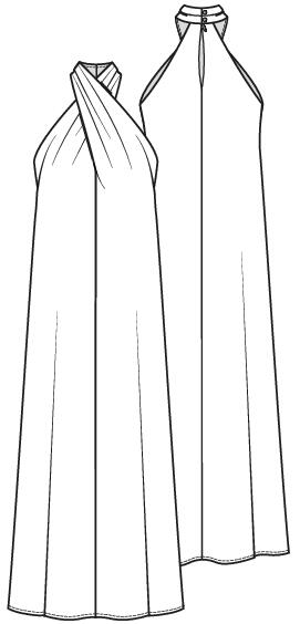 Deze stijlvolle halterjurk is perfect voor feestelijke momenten! De gekruiste halterlijn en vloeiend vallende A-lijn zorgen voor een elegante, flatterende pasvorm. Deze jurk met couture-allure sluit achter met een knoopje in de hals en is ideaal voor wat dikker satijn of soepel vallende crêpe.
