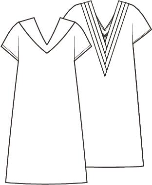 Dit kledingstuk blinkt uit in eenvoud. Het rechte model heeft een aangeknipt kapmouwtje en voor en achter een diepe V-hals met extra brede bies. Door het simpele model is hij extra geschikt voor een speciale stof.