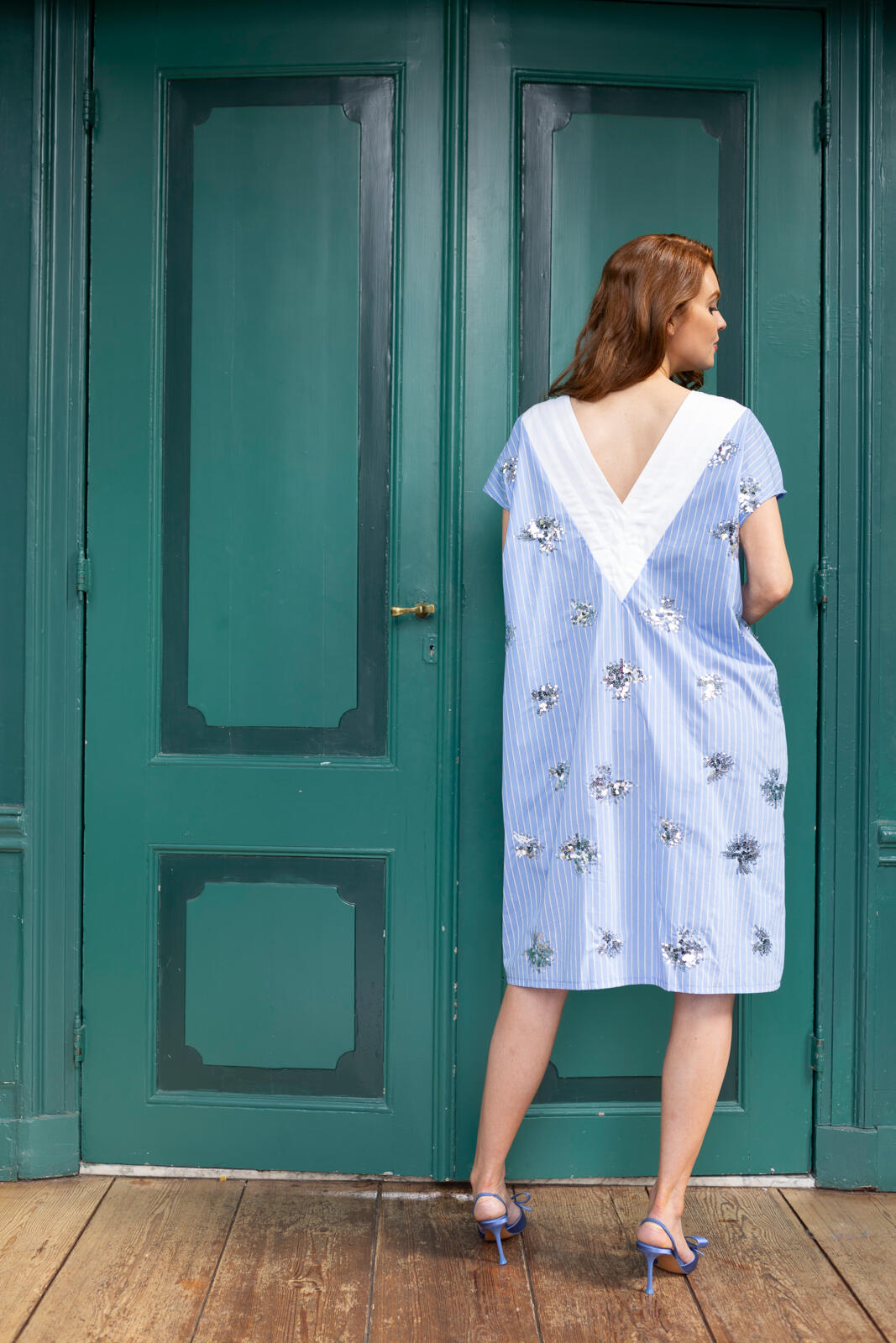Stoffen: wat steviger satijn, linnen, chambray, poplin.