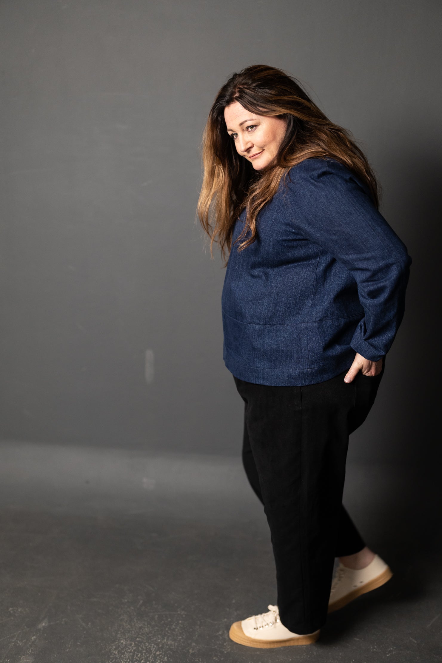 Geïnspireerd op de klassieke fisherman’s top, maar met een vrouwelijke twist. Dit kledingstuk zit precies tussen een trui en een jas in: ideaal als veelzijdige laag voor elk seizoen. Alle decoratieve stiksels zijn optioneel, zodat je de afwerking helemaal naar eigen smaak kunt bepalen.
