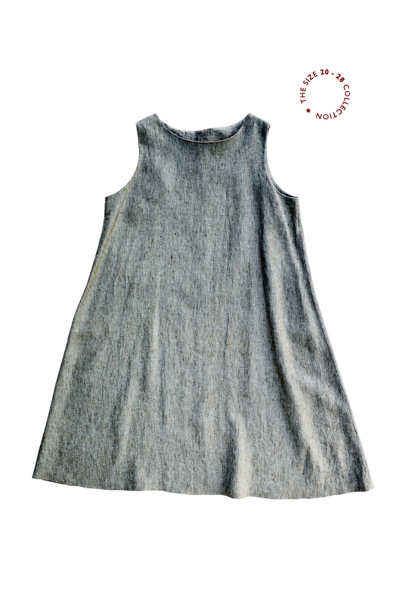 De Trapeze Dress is een elegante geklokte jurk tot net over de knie, met fijne schouderlijnen en een subtiel afgeronde halslijn. Je kunt kiezen voor een knoopsluiting aan de achterkant of een eenvoudig over-het-hoofd model. Dit patroon is zowel makkelijk te maken als heerlijk om te dragen, een echte allrounder voor elk seizoen.